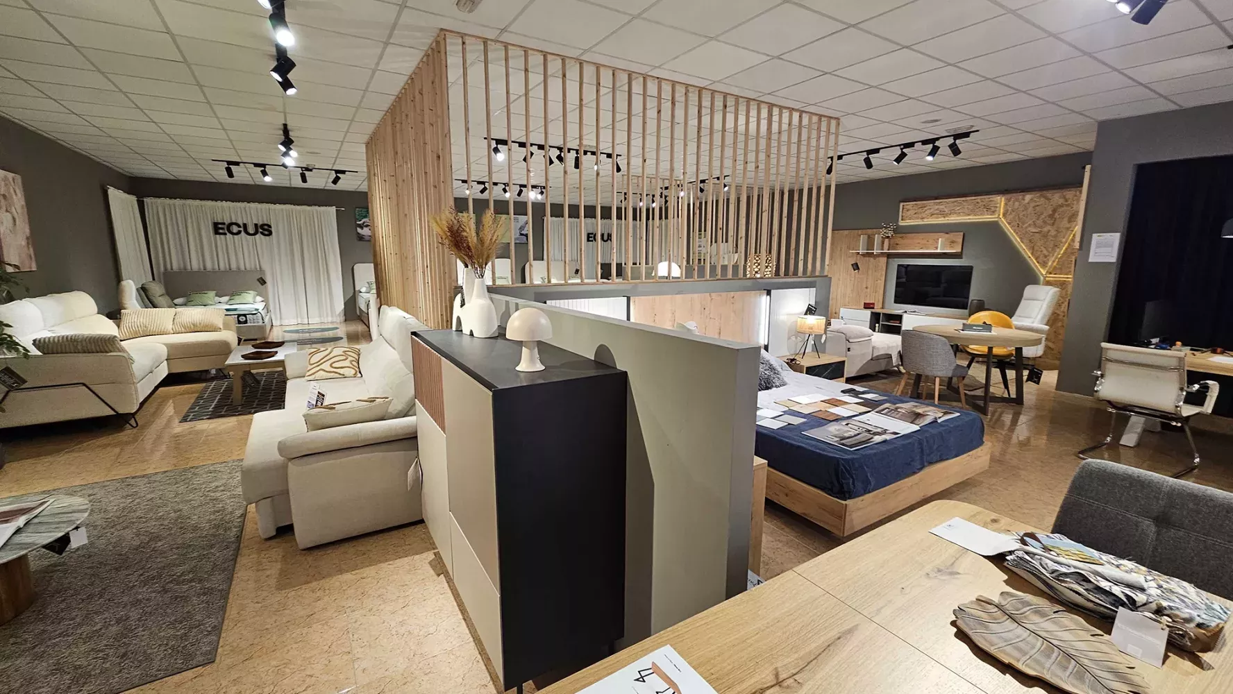 Disponemos de un espacio de 500 m2 de exposición de muebles, donde encontrarás un amplio catálogo de mobiliario de salones, dormitorios y todo lo que necesitas para hacer realidad el proyecto de tus sueños.